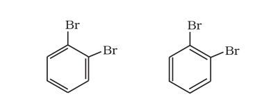 Thanks to the Kekule structure, two isomeric forms of the derivative of benzene- 1,2- Dibromobenzene– occur. One of the bromine atoms is attached to the singly bonded carbons while the other one is attached to the doubly bonded carbon atoms.