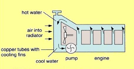 Engines in vehicles like cars are cooled by water jackets. Prolonged running of the engines leads to the warming of the water in the water jacket/water pipes which surround the engine. In order to keep the engine running, the water must be cooled down. When the water heats up, it starts to flow in the pipes which are present around the engine. When the warm water flows through these pipes, it is cooled down by the fans. These fans are also present in the pipes. Once the water cools down, it flows back into the engine; hence, obeying the very principle of convection and cooling the engine down.