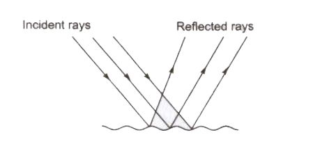 • Diffused/Irregular Reflection: An irregular reflection occurs when the reflecting surface is rough. When a beam of incident rays strikes a rough surface, a non-parallel beam of reflected rays is obtained.